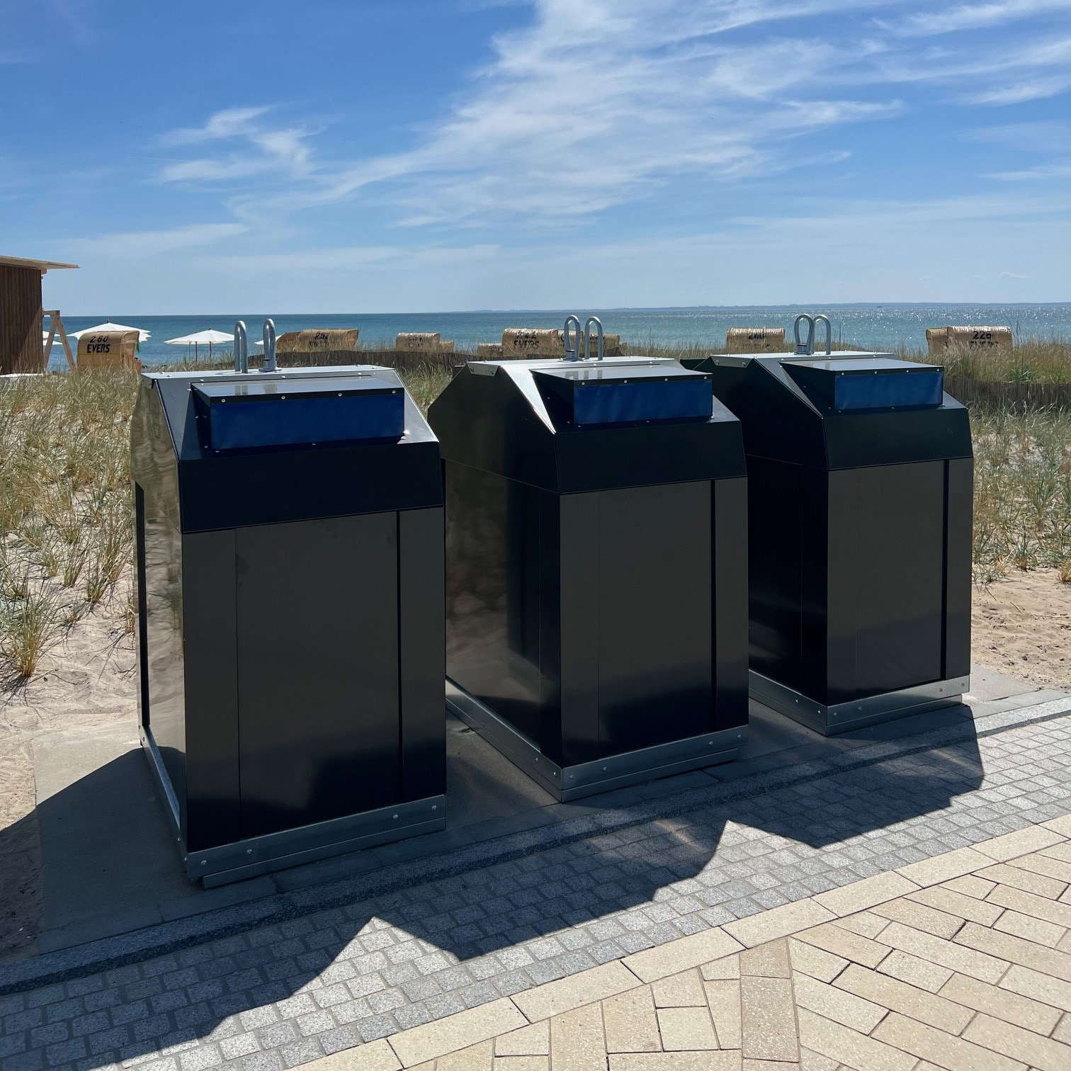 Die kompakte Aufstellung ist platzsparend und verhindert Ablagerungen zwischen den Containern.